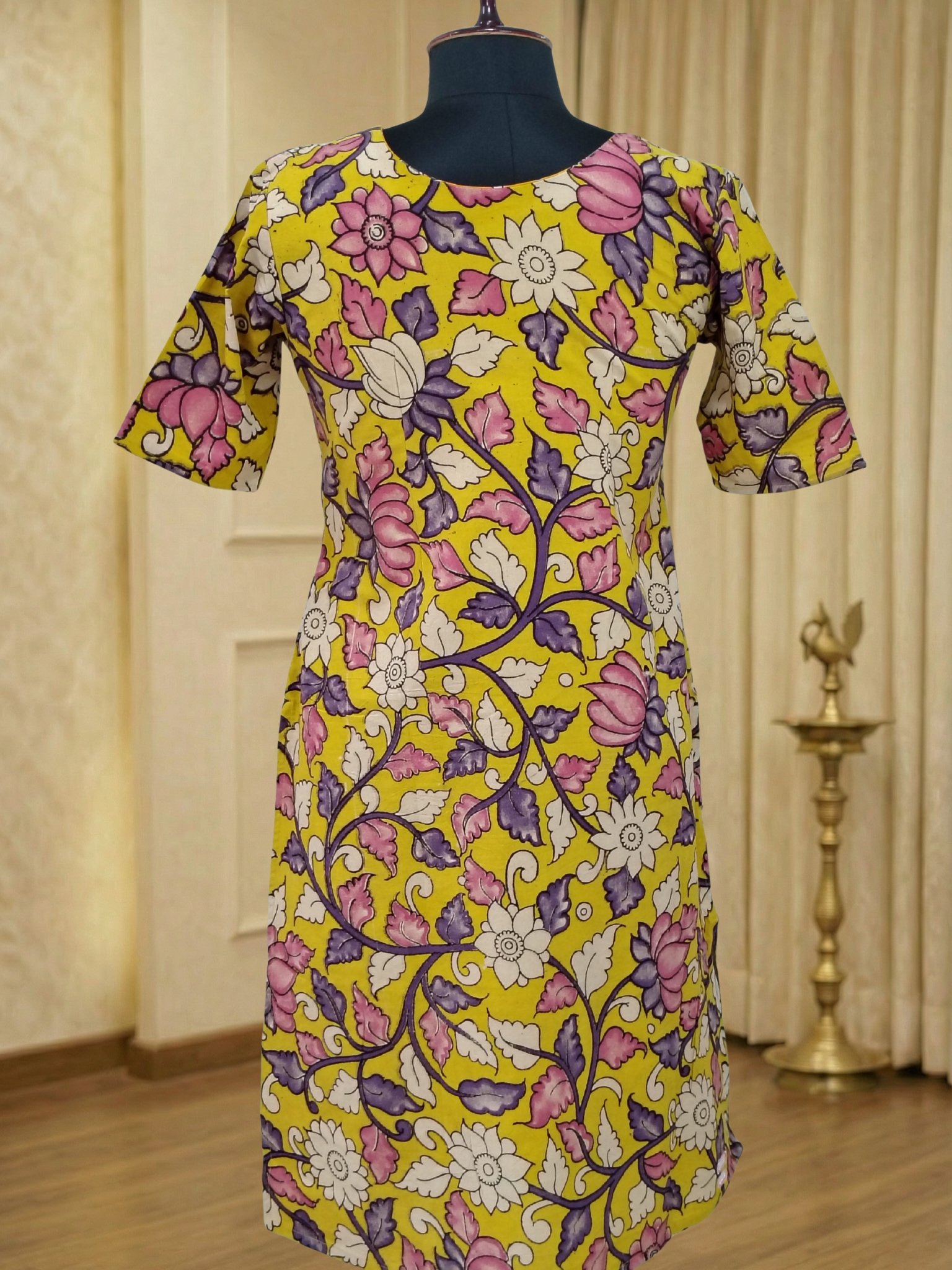 Elegant and timeless, this Kalamkari printed straight dress blends traditional artistry with modern comfort. Crafted from soft, breathable fabric, it offers a flattering fit for everyday wear, office styling, and festive occasions. Custom stitching ensures a perfect fit tailored to your style.