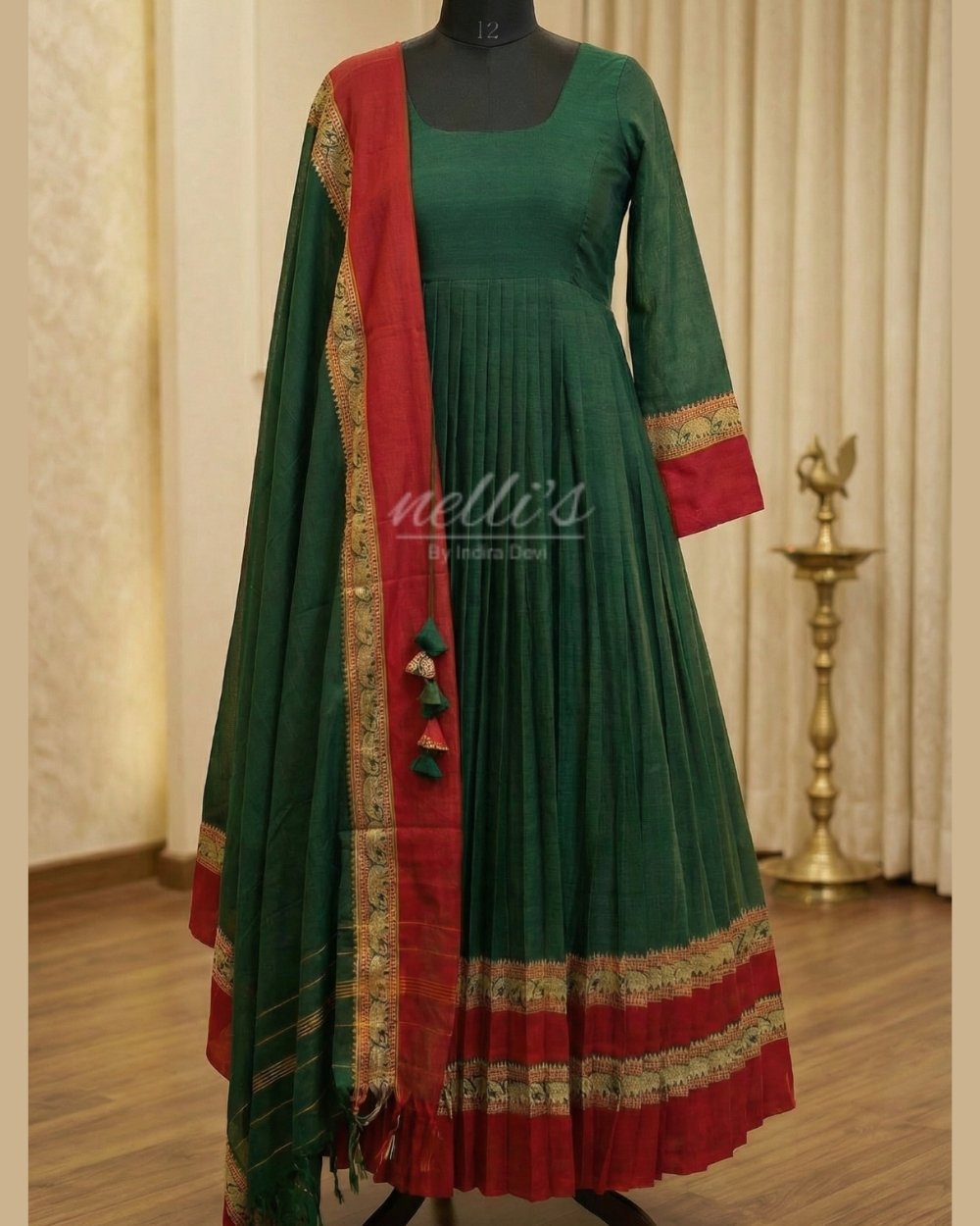 The breathable cotton fabric ensures comfort while the pleated design provides a graceful and flattering fit. Perfect for festive occasions, traditional events, and everyday ethnic wear.