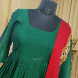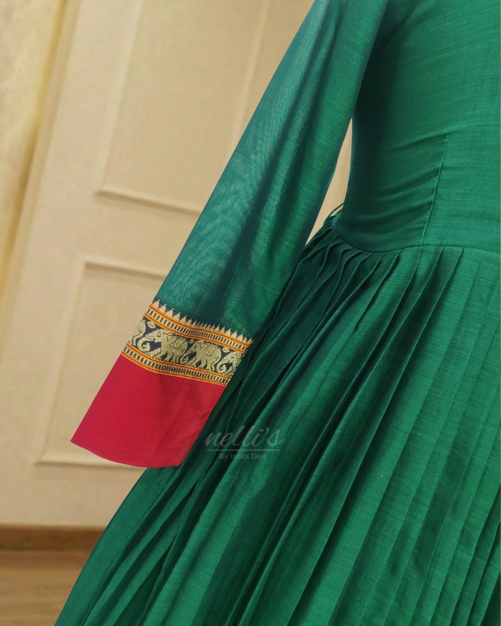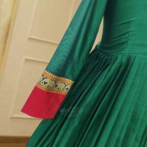 Narayanpet Cotton Elephant Border Dress from Nelli’s by Indira Devi showcases traditional South Indian craftsmanship with elegant ethnic styling. Made from premium Narayanpet cotton fabric, this dress features beautiful woven Elephant borders that enhance its traditional appeal.