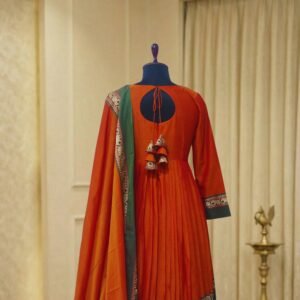 Narayanpet Cotton Elephant Border Dress from Nelli’s by Indira Devi showcases traditional South Indian craftsmanship with elegant ethnic styling. Made from premium Narayanpet cotton fabric, this dress features beautifully woven Elephant borders that enhance its traditional appeal.