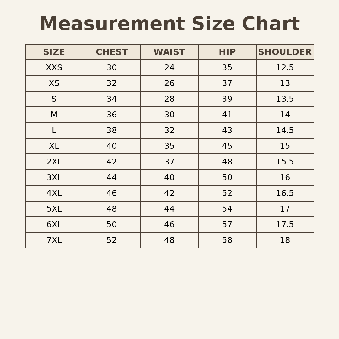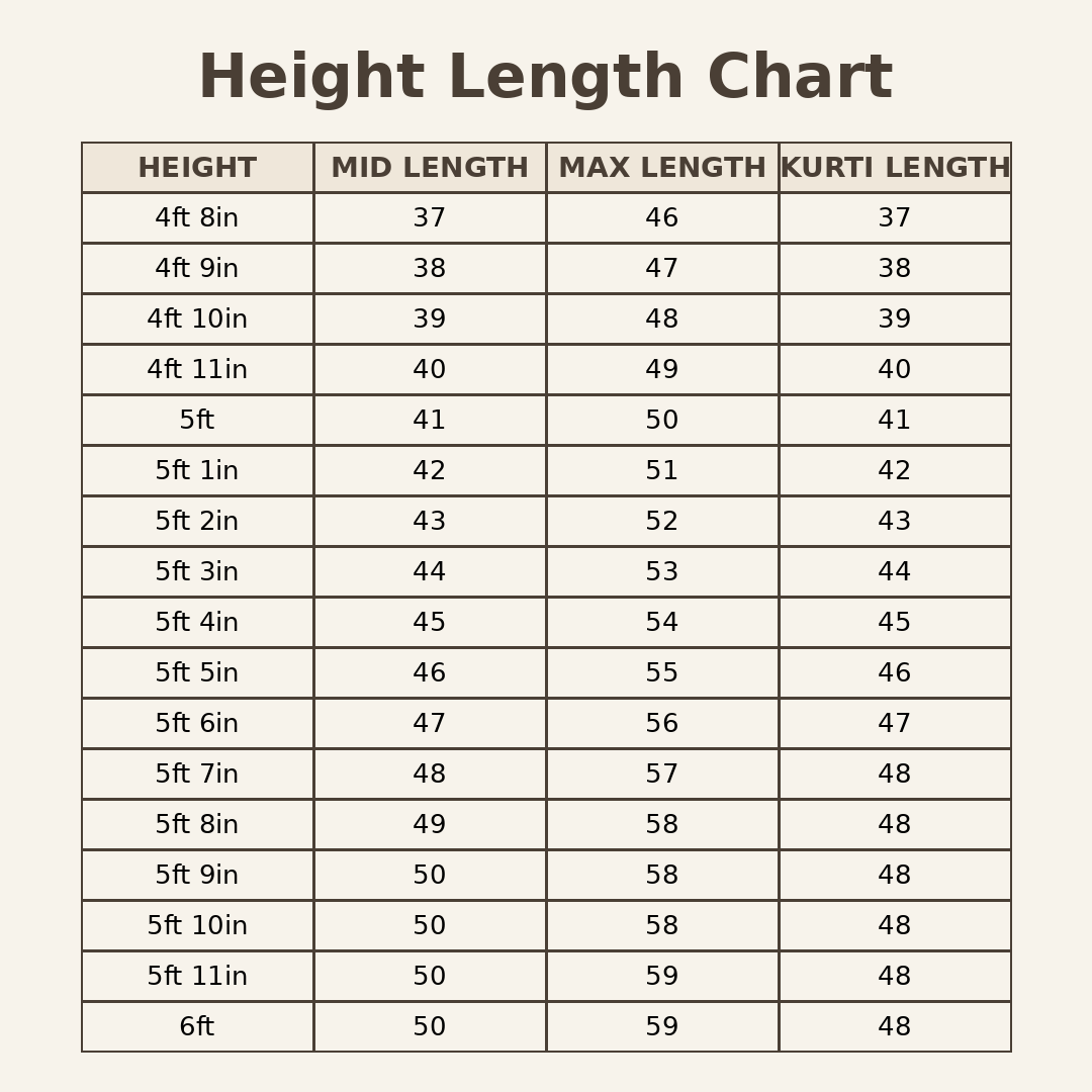 Nelli’s Size Chart